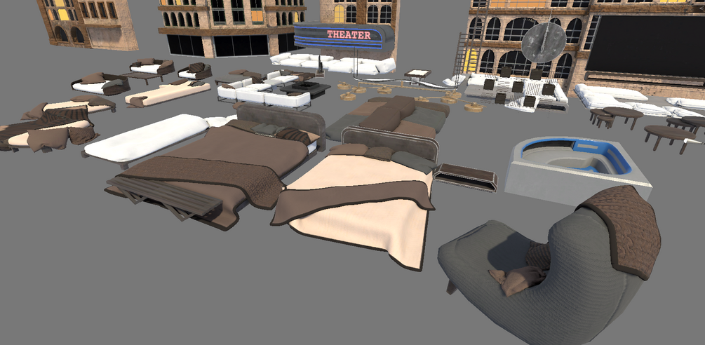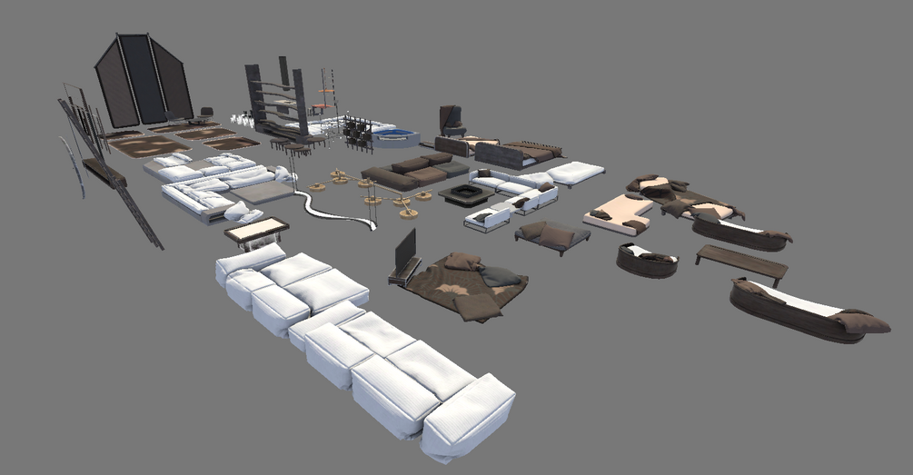 Disclaimer! As these assets where designed for a specific map SOME of the fabric based assets pillows or blankets may be floating on nothing, you can add something there your self or edit the mesh! I have tried my best to only include the assets where this is manageable or not an issue at all