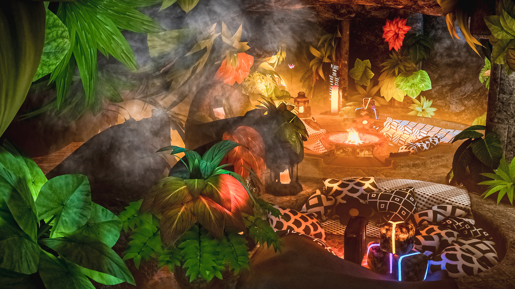 Welcome to P L A N T your very own tropical cave hangout! Kick back with friends whether its at the custom pool table temple, in the oasis spa or cuddling up in bed watching videos!