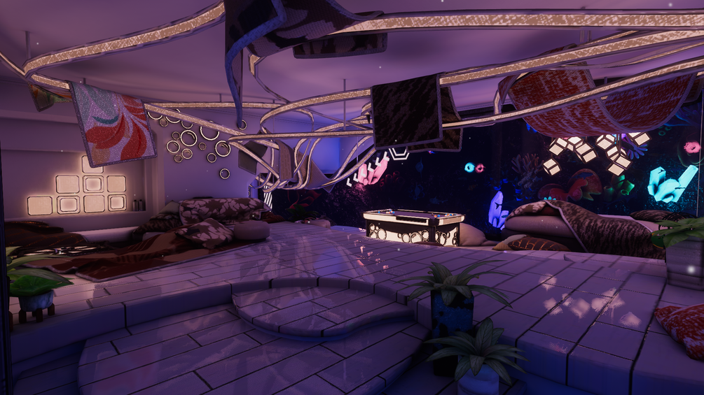 Radiant Shallows, is your very own underwater getaway! Kick back with friends, at the bottom of the ocean, playing spin the bottle, cards, Pool, or Racing!